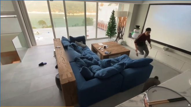 客厅直接连通露台,遛狗完全不是问题。最让人羡慕的是,人家客厅里没有电视,取而代之的是